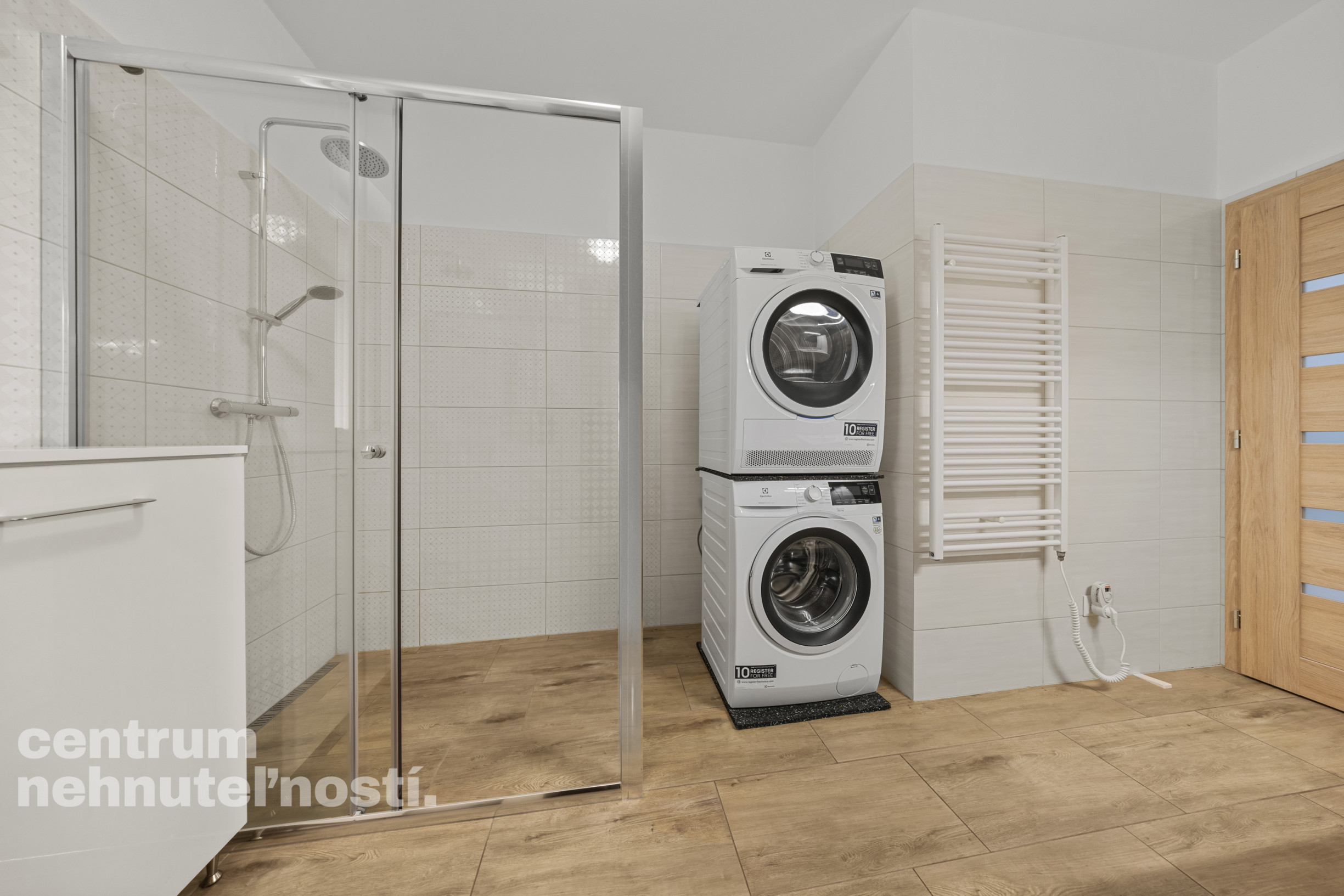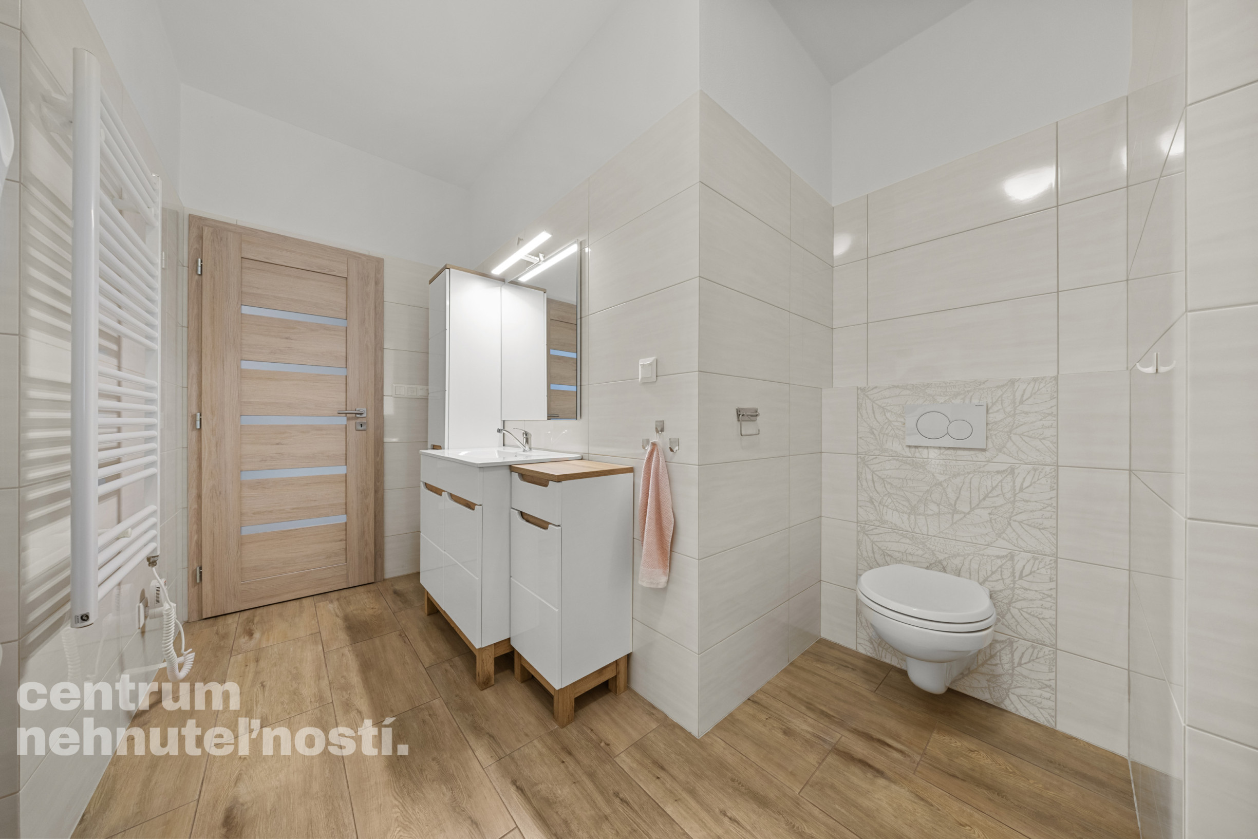 Veľká kúpeľňa s toaletou a ďalšia samostatná toaleta - kúpeľňa s veľkým sprchovým kútom a toaletou. Druhá toaleta je samostatná s umývadlom. Vzhľadom na veľkosť kúpeľne, je možnosť prerobenia kúpeľne so sprchovým kútom a vaňou.