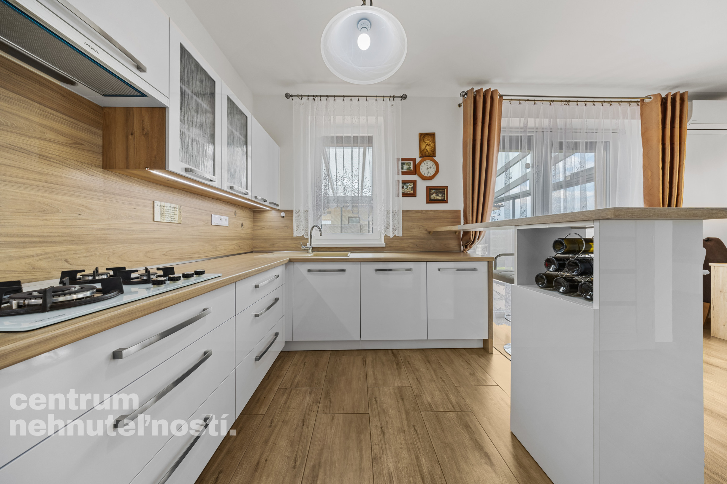 Veľká kuchyňa – dom je zariadený veľkou kuchyňou so vstavanými spotrebičmi - umývačka riadu, plynový sporák, digestor s vývodom odsávania von z domu, rúra, mikrovlnná rúra, chladnička s mrazničkou.