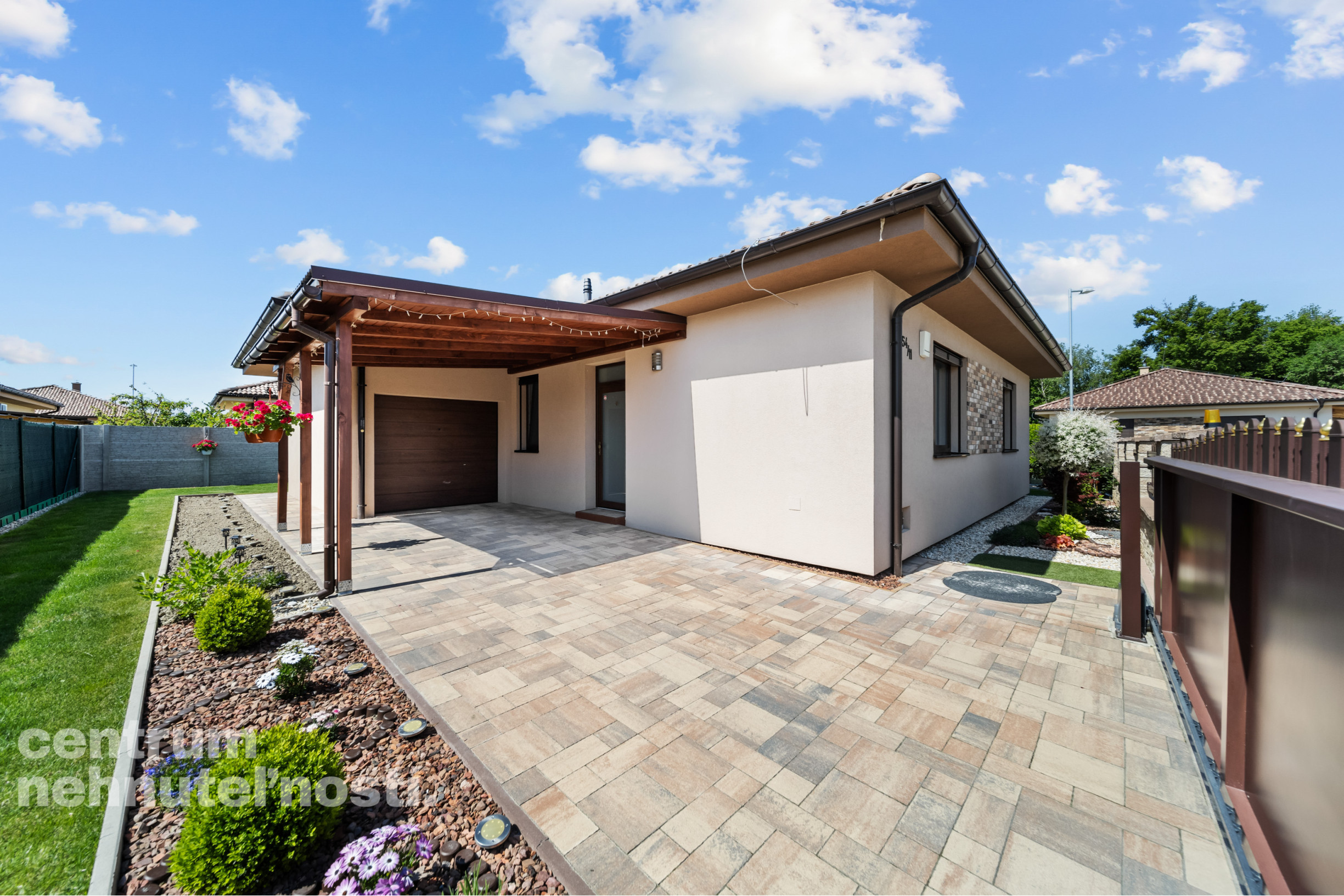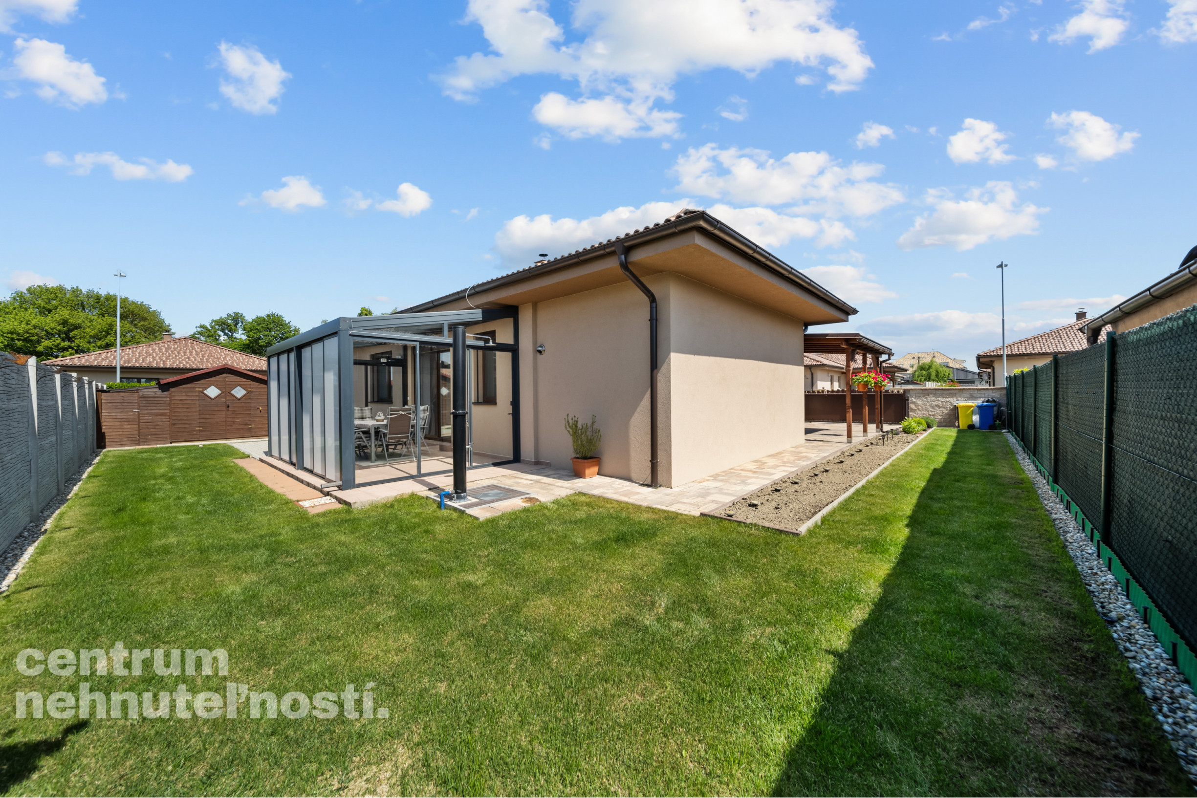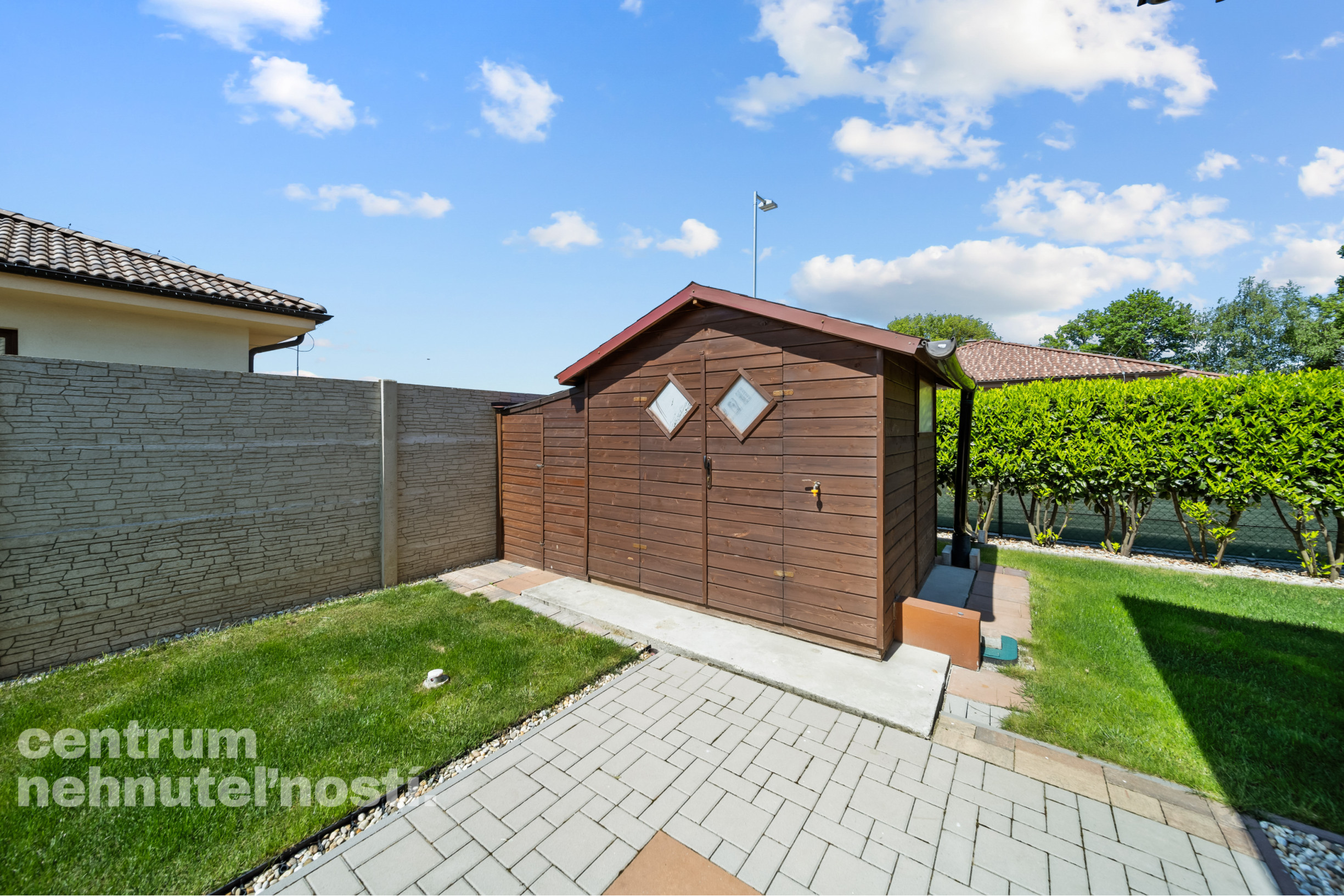 - vlastná studňa na závlahu trávnika a drevín na pozemku