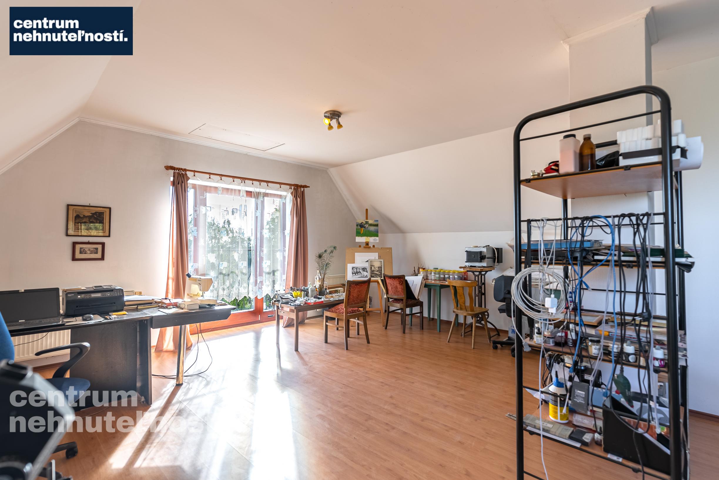 2.poschodie - hala so schodiskom, jedna veľká izba, ktorá sa akutálne využíva ako presvetlený umelecký ateliér.