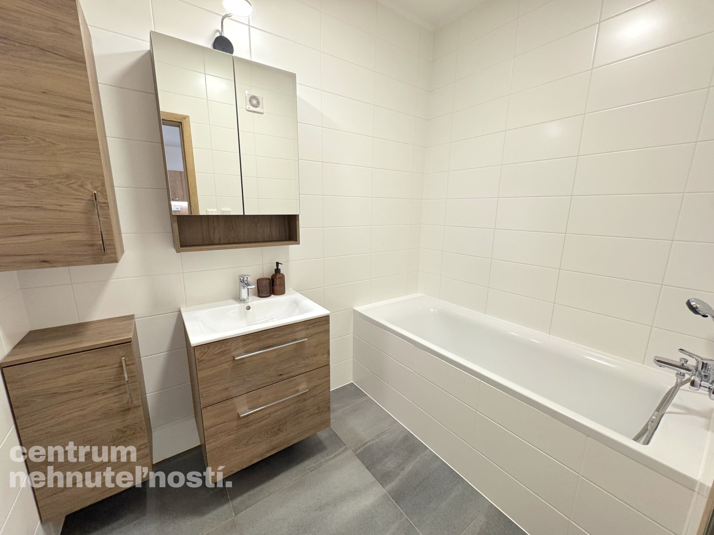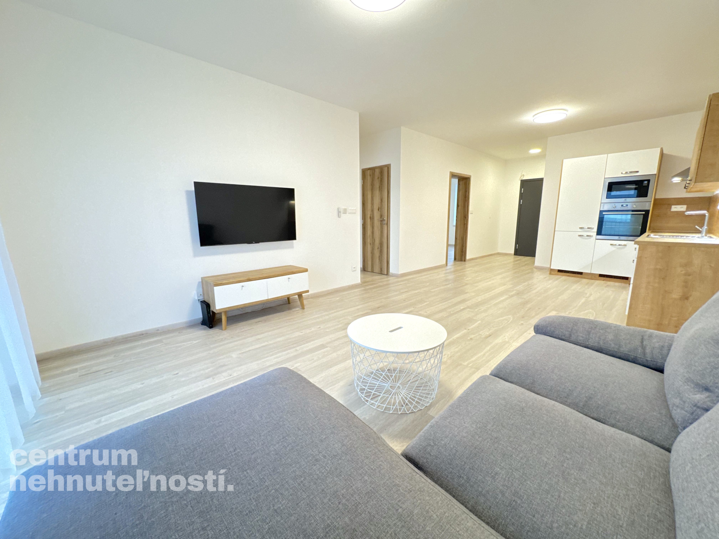 Novostavba. V celom byte je podlahové kúrenie, klimatizácia a rekuperácia, externé žalúzie na diaľkové ovládanie. Kuchynská linka vrátane vstavaných spotrebičov (umývačka riadu, chladnička s mrazničkou, rúra, mikrovlnná rúra, indukčná varná doska, digestor). Predsieň, technická miestnosť s vlastným zásobníkom na teplú vodu. Kúpeľňa s vaňou, samostatná toaleta s umývadlom. Veľká obývačka spojená s kuchyňou. V obývačke je rohová pohovka, konferenčný stolík, stolík pod TV a televízor. Dve ďalšie izby. V izbe a na chodbe je vstavaná skriňa. V jednej izbe je manželská posteľ s matracom. Na oknách sú externé žalúzie na diaľkové ovládanie. Možnosť dozariadenie bytu podľa dohody.